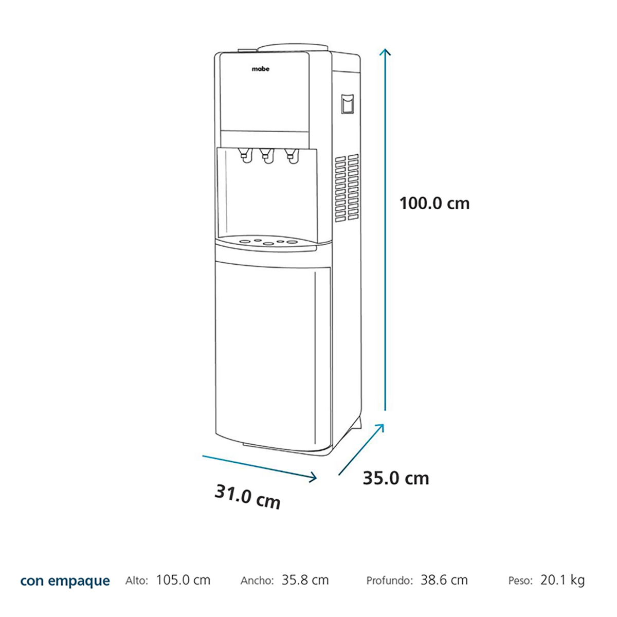 Disfrutar se hace más fácil con este dispensador que me brinda agua al clima, Fría, y Caliente para disfrutar de mis bebidas favoritas al instante. Además cuenta con Gabinete inferior de almacenamiento para almacenamiento frío, ideal para mantener los vasos, cristalería y pasabocas refrigerados.