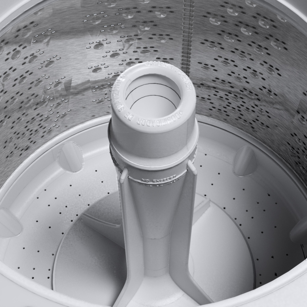 De acero inoxidable y máxima capadidad. El diseño de la canasta ayuda a una mayor salida de agua y pronto secado de la ropa. Balance de la tina para evitar que pegue o se cargue hacia un lado por el peso de la ropa.